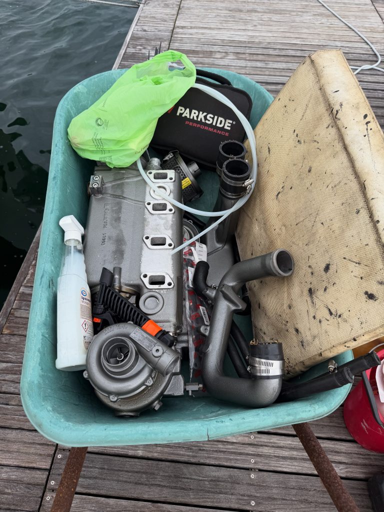 Für mich bestand der Tag aus viel herumsitzen und nichts tun, da es draussen relativ schlechtes wetter gab. Der Motor Spezialist hat in der Zwischenzeit alles auseinander geschraubt. Das Problem war dort wo wir es befürchtet haben. Der Wärmetauscher, welcher die Kühle des Seewassers an das interne Kühlwasser abgibt, war komplett verklebt mit der Öl-Kühlwasser Emulsion. Noch dazu war dieser komplett verkalkt. Der Spezialist hat dann (mithilfe der italienisch Kenntnisse meiner Mutter) uns zu verstehen gegeben, dass es eine Weile dauern könnte bis das Ding gereinigt ist und er es gerne mitnehmen möchte. Da haben wir zugestimmt und es hiess durchatmen.