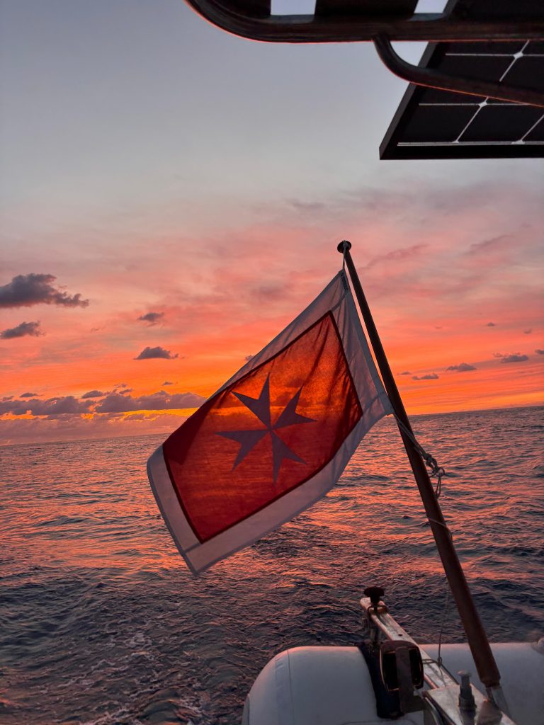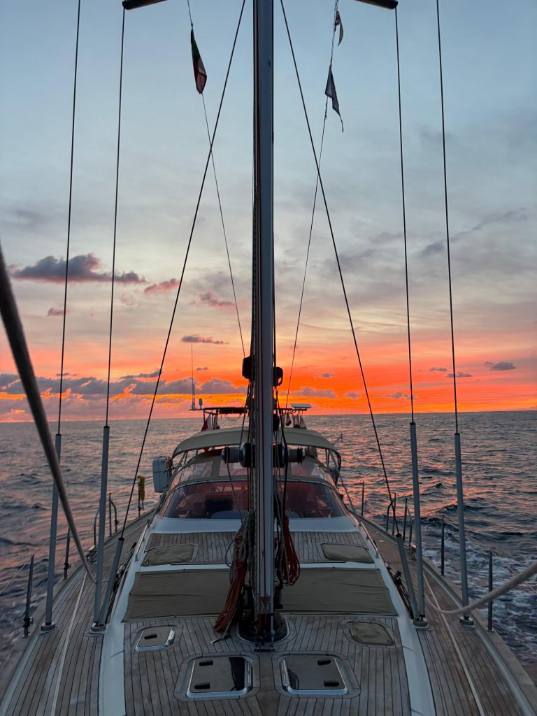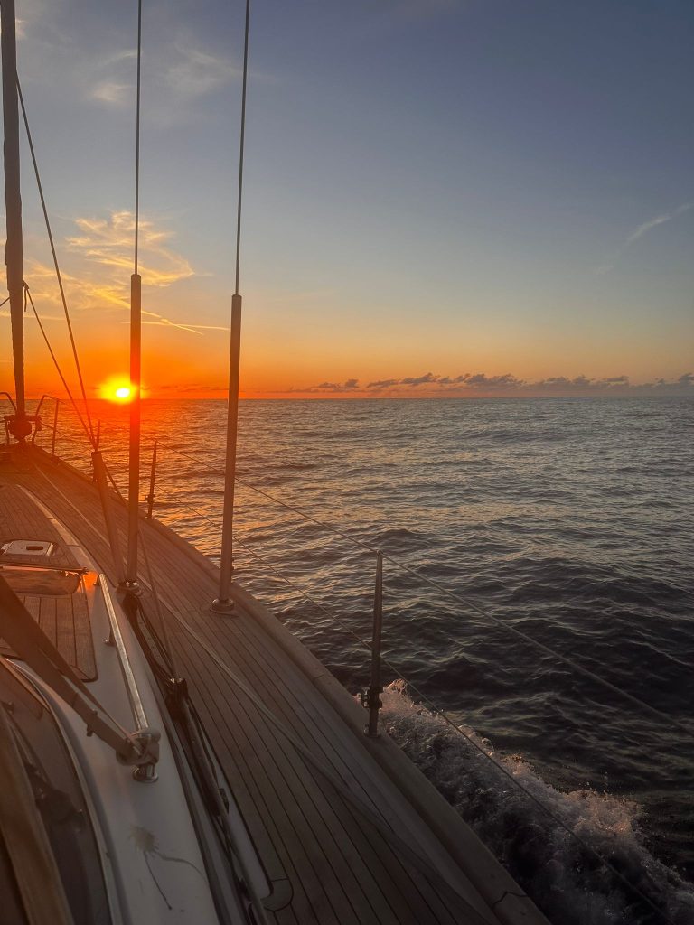 Der Grund für die eiserne Nacht, war das ich bereits um 2 Uhr aufstehen musste um gemeinsam mit meiner Mutter wache zu halten. Mir war wieder relativ schlecht und ich habe die Nacht damit verbracht raus auf den dunklen Horizont zu schauen. Wir hatten 4 Stunden und waren bereit diese durchzumachen (mehr oder weniger). Viel ist die Nacht nicht passiert. Wir haben motort und einmal ist uns etwas leuchtendes im Wasser entgegengekommen wo wir uns nicht sicher waren ob es irgendwas war oder nur unsere Einbildung. Um 5:45 haben uns Mona und Alex bereits abgelöst und wir sind ohne große Probleme schlafen gegangen.