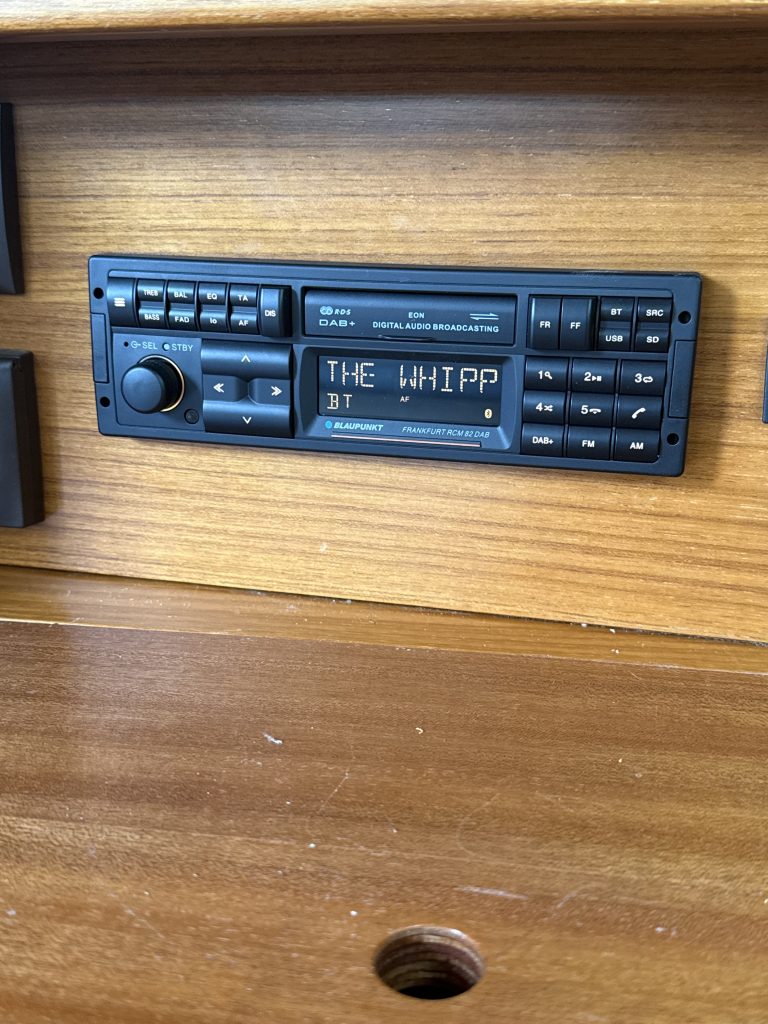 – Neues Autoradio (im alten Stil) damit wir wieder ungehindert Musik draussen und drinnen hören können