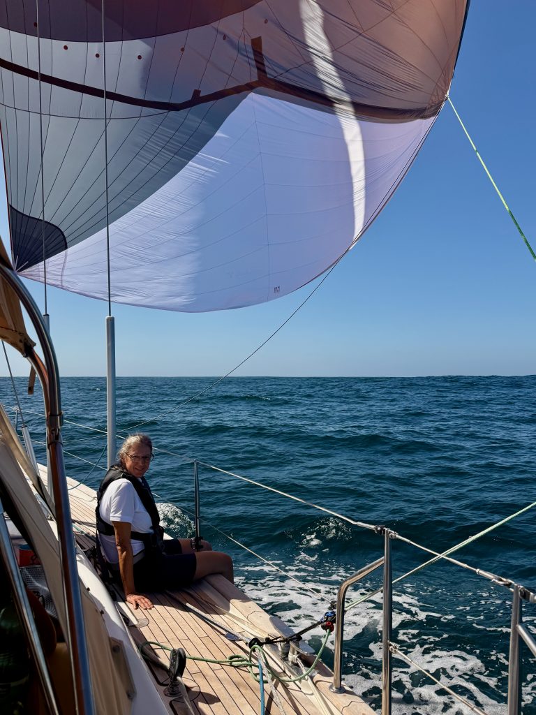 Der Wind hat gedreht und wir fahren am Wind. Papa sagt es ist Wind wie am Bodensee bei einer Rundum. Keine Wellen, leichte Brise, vorsichtiges Steuern am Rad. Eine fast unwirkliche Stimmung mitten am Atlantik.