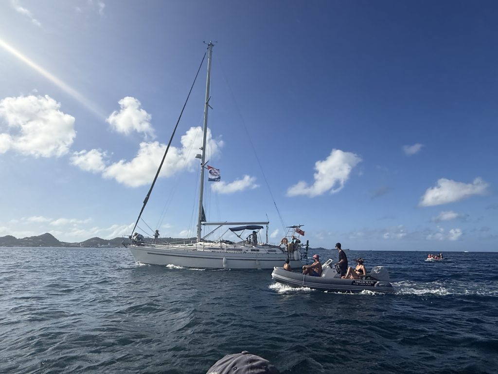 Freitag: Es geht wieder los! Eine letzte Runde der Verabschiedungen und wir sind gerade auf dem Weg nach Carriacou. Dort haben wir für heute Abend einen Platz im Lobster Restaurant reserviert. Noch fahren wir bei Grenada entlang. Der Wind ist extrem wechselhaft. Alle sind happy wieder am Wasser zu sein!
