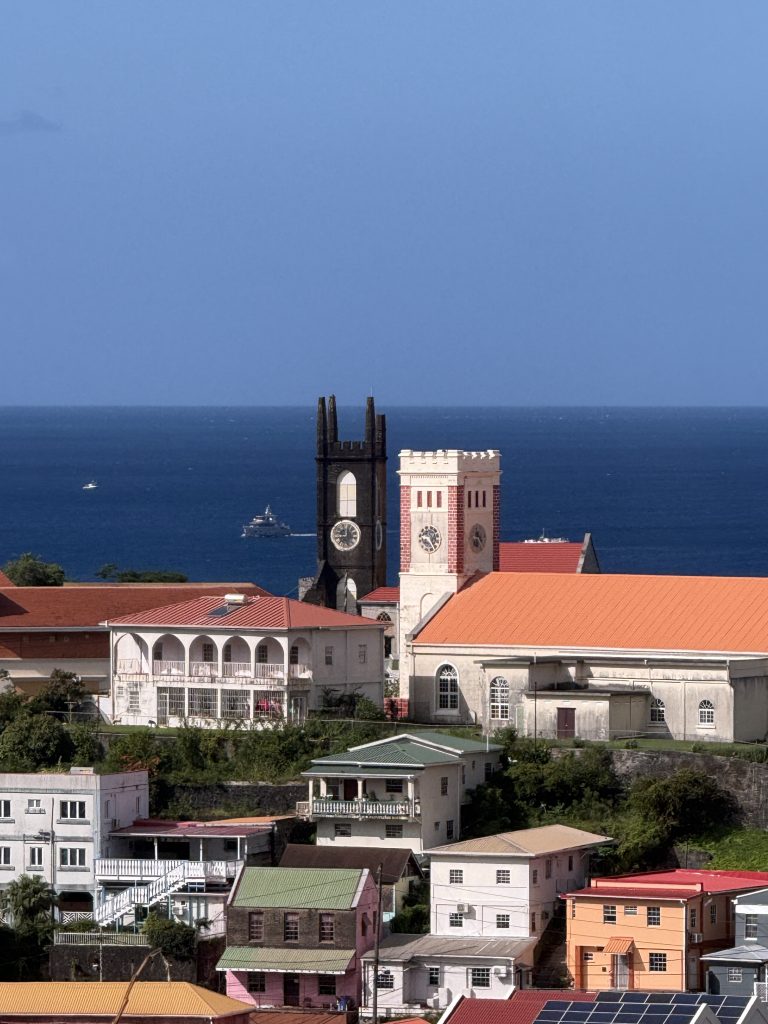 Montag früh ist Elina angekommen und dann ging es in die Stadt St. George, angeblich einer die schönsten Städte hier. Nichts sehr groß, sehr bunt und wahnsinnig viel los auf der Straße. Vor 14 Jahren war hier ein Hurricane, die Wunden davon sieht man bis heute. Vor allem sind einige schöne alte Häuser nicht wieder aufgebaut worden, da das Geld dafür fehlt. Drei Kirchen, die alle zu waren, hügelig, freundliche Menschen. Zum Schluss sind wir noch ins Nationalmuseum gegangen, das aus drei kleinen Räumen besteht. Einer war über die Sklavenzeit, einer Geschichte uns ein Raum über die Schönheitsköniginnen der Insel.