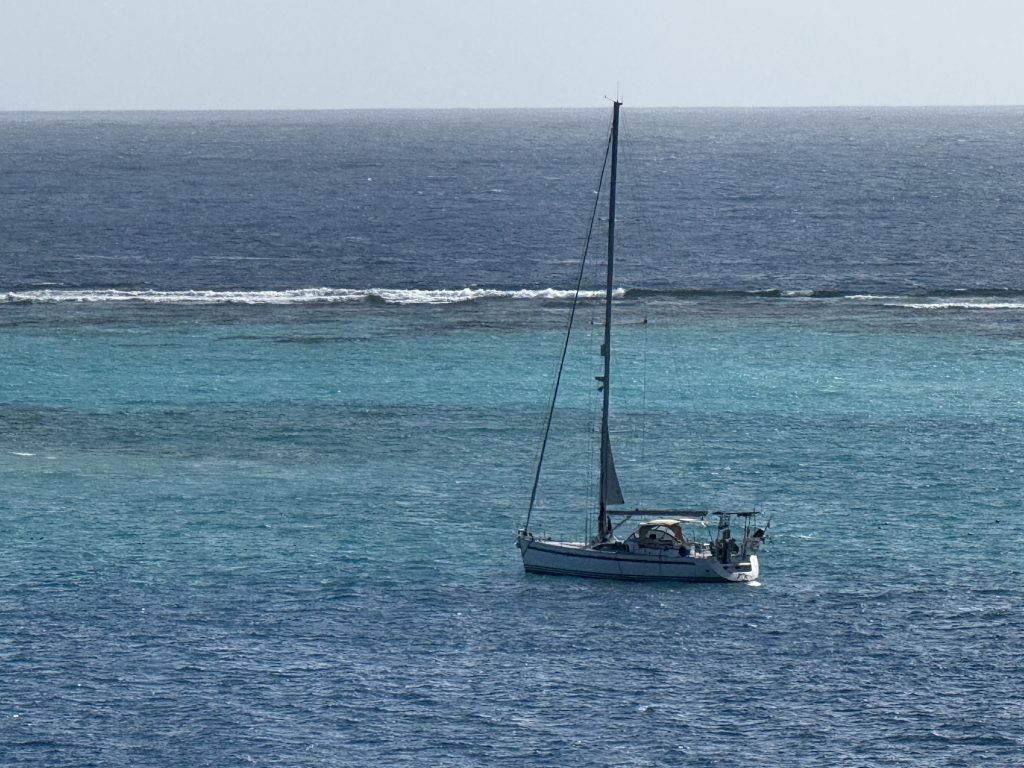 Die Tobago Cays sind ein Naturschutzgebiet – also angeblich, am Papier. Was sich in den nächsten Stunden abgespielt hat, war unbeschreiblich. Es ist Boot um Boot hereingekommen. Dazwischen die Motorboote der Boat Boys. Alle haben sich auf die Schildkröten gestürzt und sind mit Schnorcheln ins Wasser. Oder haben sich gegenseitig mit den Dinghis behindert, sind damit an den Strand an dem man angeblich nicht mi dem Dinghi darf. Wir haben beschlossen rasch zu fahren, wollten aber vorher auch noch schnorcheln. Was soll ich sagen. Alle Korallen tot, kein einziger Fisch. Vielleicht weiter draußen, aber da war zu viel Wind. Es war niederschmetternd und wir haben so schnell wie möglich das Gebiet verlassen und sind auf die nächste Insel Canouan geflüchtet.
