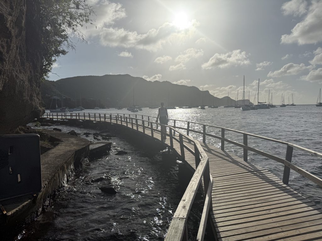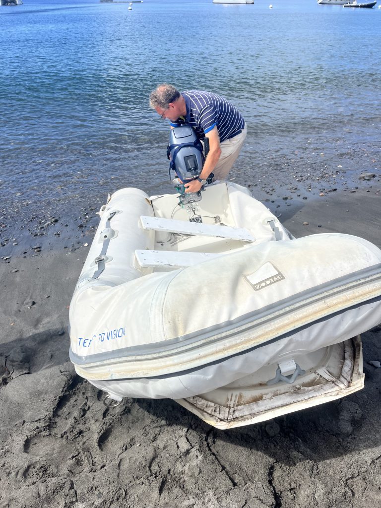 Donnerstag sind Alex und ich am Schiff geblieben. Alex hat es geschafft den Dinghi Motor zu reparieren, war wieder nur Dreck! Ich habe vorgekocht, da wir eine Nachtfahrt vor uns hatten. Der Grund war das komplizierte Aus- und Einklarieren wenn man in ein anderes Land fährt. Und das geht zwar mit App elektronisch – aber es muss dann trotzdem physisch alles wiederholt und natürlich bezahlt werden. Oft eine stundenlange Prozedur. Mit der Nachtfahrt konnten wir in einem Rutsch Europa erreichen. Wie das? Martinique gehört u Frankreich und ist damit offiziell Teil der EU. Einklarieren war dort viel einfacher. Die Jung Mannschaft ist nochmals in den Ort gefahren.