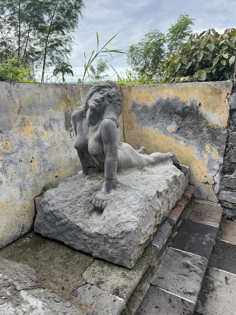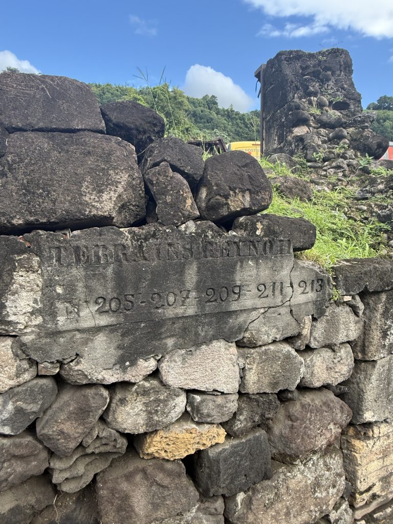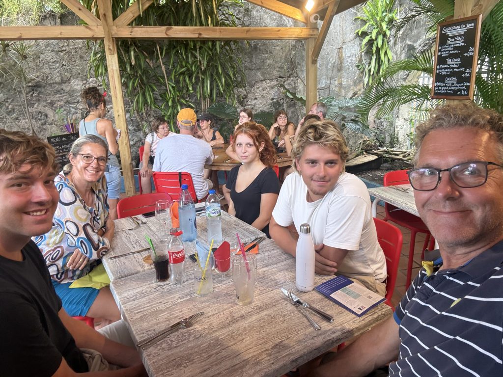 Samstag werden wir wieder abgeholt und besichtigen den Ort St. Pierre nun ausführlich. Start ist ein Frühstück in einem süßen Café. Mitte bis Ende des 19.Jhdt. war die Stadt ein riesen Handelszentrum, das wohl sehr schöne Häuser hatte. 1902 ist der Vulkan, der sich direkt hinter der Stadt befindet, ausgebrochen und hat nicht nur die gesamte Stadt zerstört, sondern auch fast allen Einwohnern das Leben genommen. Wir haben einige der Ruinen angeschaut. Es gab ein großes Theater, Gefängnis und Handelshäuser. Schöne Kirchen und Hafenanlagen. Alles verschüttet. Die Stadt hat sich nie mehr von der Naturkatastrophe erholt und ist auch heute noch recht klein. Wir waren auch im Museum der Stadt, sehr interessant. Spannende Exponate aus der Zeit vor und nach der Katastrophe. Hier wurden die Sklaven ebenfalls 1848 befreit.